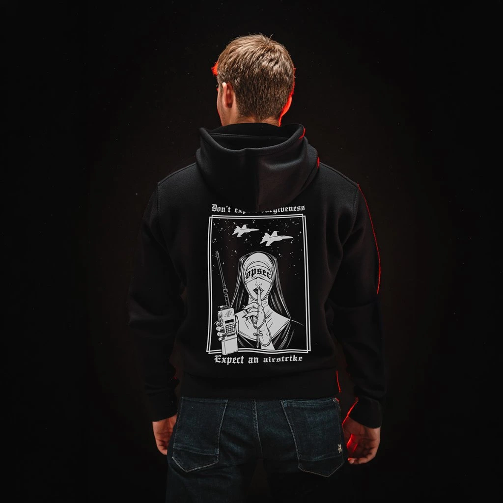 Oproti základnímu Bravo Drop jsme vyslyšeli Vaše volání a připojili k němu i mikinu ve stejném střihu jako nosíme my. Střih dobře sedí, mikina je kvalitní a v rámci naší grupy velmi oblíbená - jak na výstavy, natáčení, střelnici nebo obecně kteroukoliv bohulibou aktivitu.