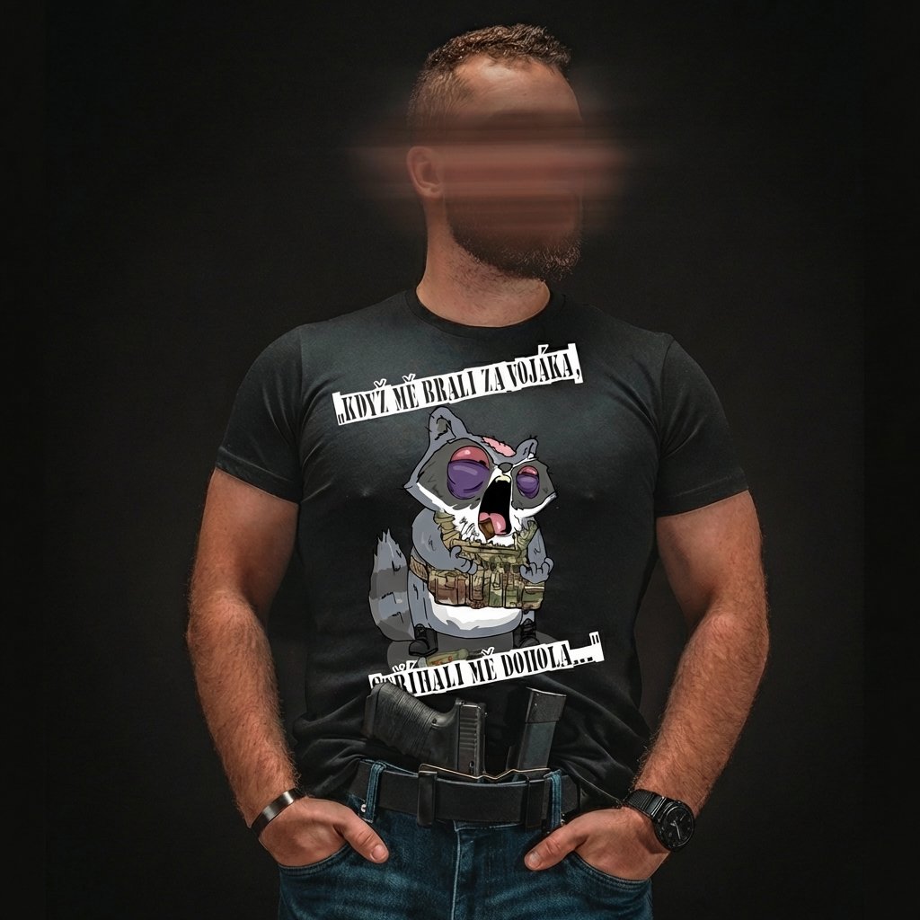 V životě jsou bitvy, co nevyhraješ bicepsem, ale palicí. A někdy ti k tomu stačí úplně obyč tričko… jen s neobyč mývalem, co vypadá, že právě přežil odvod, tři nástupy a jedno „to bude v pohodě, synku“ (spoiler: nebylo).