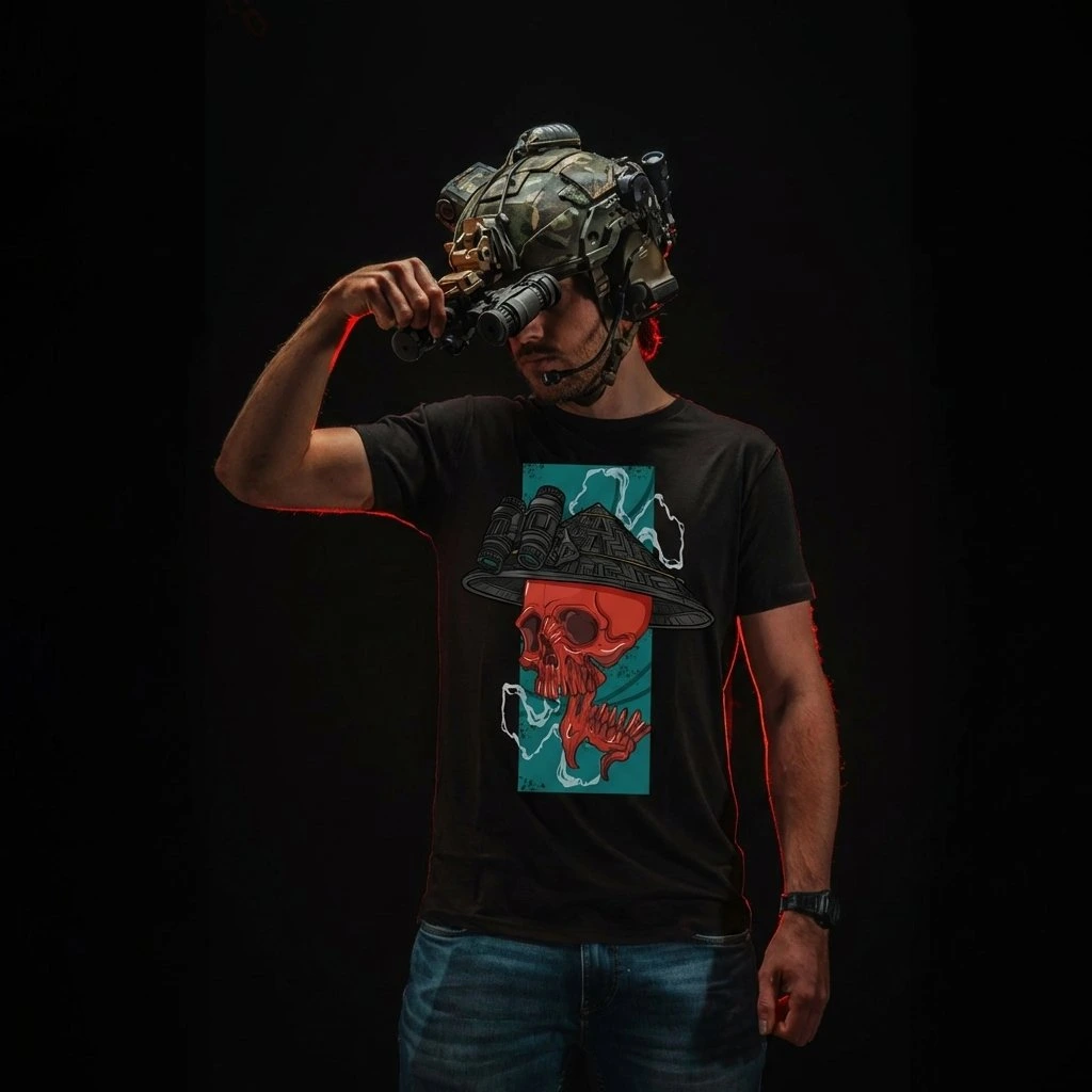 V životě jsou momenty, kdy se nehraje na hlasitý řeči, ale na ticho po dopadu. A někdy ti k tomu stačí úplně obyč tričko… jen s neobyč motivem, kterej nevypadá jako „hezká grafika“, ale jako varování vyrytý do oceli.